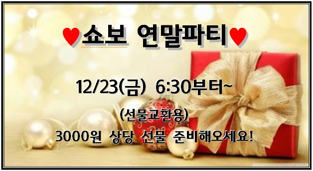 선물교환용 3000원 상당 선물을 준비해오세요!!!