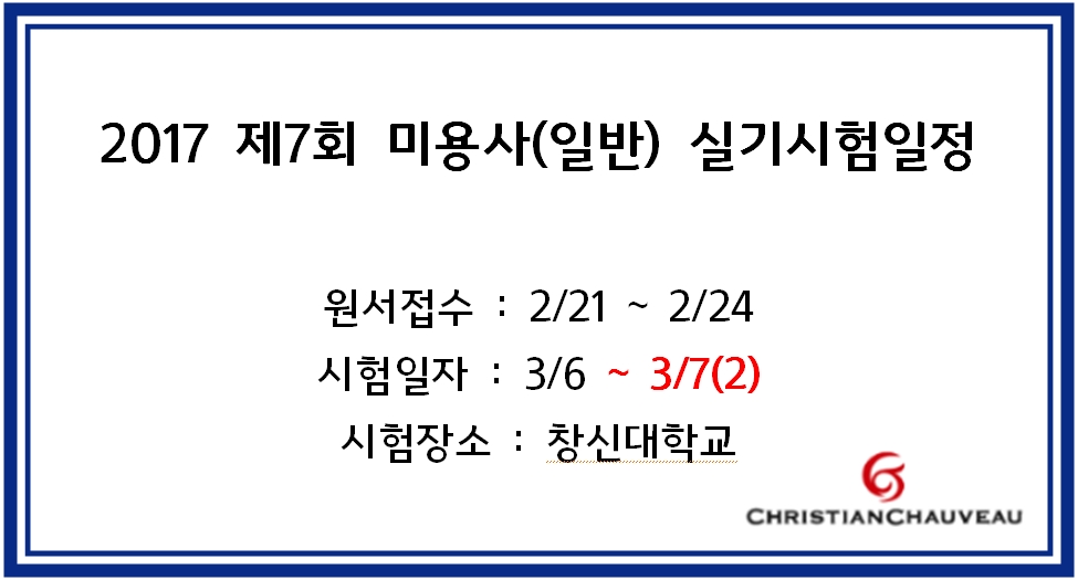 2017 제6,7회 미용사(일반) 실기시험일정 변경 및 추가 안내 페이지 정보 작성자 크리스챤쇼보 작성일17-02-23 14:13 조회34,909회 댓글0건 관련링크 이전글 다음글 목록 본문 6회 미용사(일반) 부산시험일자 변경전 3/1~2(이틀)변경 후 > 3/1(하루)7회 미용사(일반) 창원시험일자 변경전 3/6(하루)추가 변경 후 > 3/6~3/7 (이틀)ㅡㅡㅡㅡㅡㅡㅡㅡㅡㅡㅡㅡㅡㅡㅡㅡㅡㅡㅡㅡㅡㅡㅡㅡㅡㅡㅡㅡㅡㅡㅡㅡㅡㅡㅡㅡㅡㅡㅡㅡㅡ6,7회 미용사(일반) 실기시험일정이 변경 및 추가 되었습니다~일정확인 잘하시고 접수 잘하시길 바래용!창원미용학원 크리스챤쇼보055 261 0080 댓글목록 등록된 댓글이 없습니다. 이전글 다음글 목록