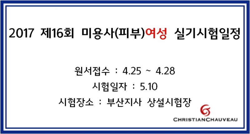 2017 제16회 미용사(피부) 실기시험일정 -부산- 페이지 정보 작성자 크리스챤쇼보 작성일17-04-21 16:17 조회32,642회 댓글0건 관련링크 이전글 다음글 목록 본문 2017 제16회 미용사(피부) 실기시험일정 -부산-원서접수 : 4.25 ~ 4.28시험일자 : 5.10시험장소 : 부산지사 상설시험장창원미용학원 크리스챤쇼보055 261 0080 댓글목록 등록된 댓글이 없습니다. 이전글 다음글 목록