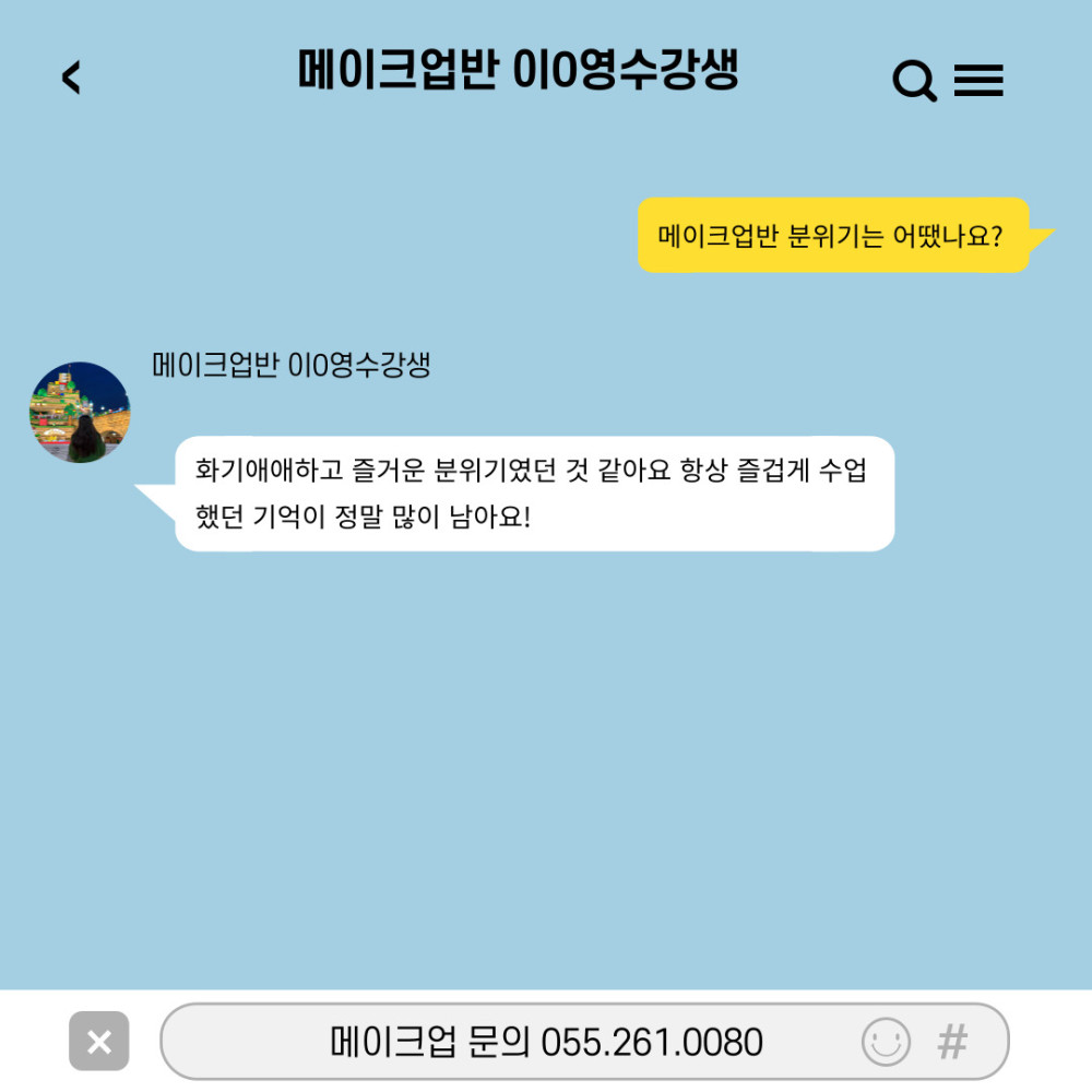 저희 창원마산진해미용학원크리스챤쇼보 메이크업반은 딱딱한 수업분위기로 수업하지 않아요!