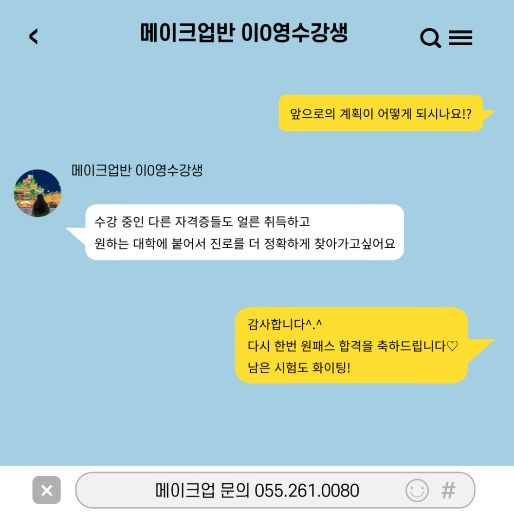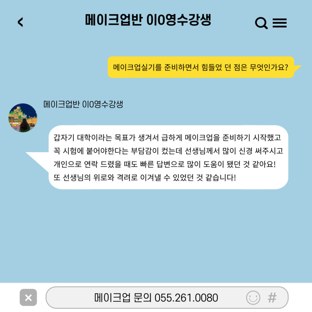 합격자인 이0영 수강생은 메이크업국가자격증 실기를 준비함과 동시에