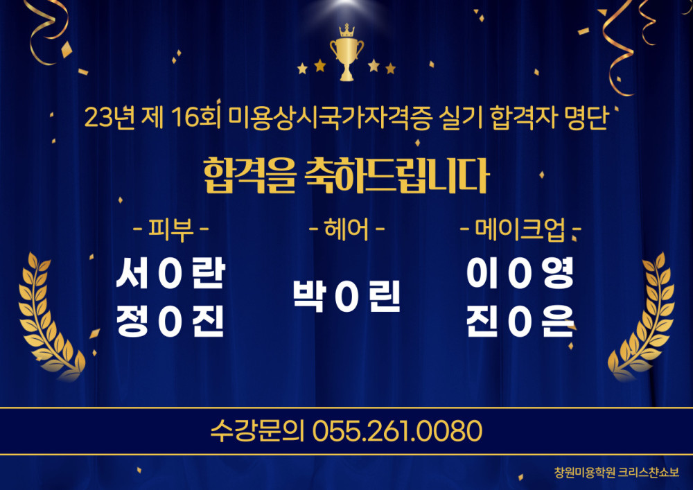 창원마산진해미용학원 23년 제16회 메이크업국가자격증 실기원패스 합격자 후기