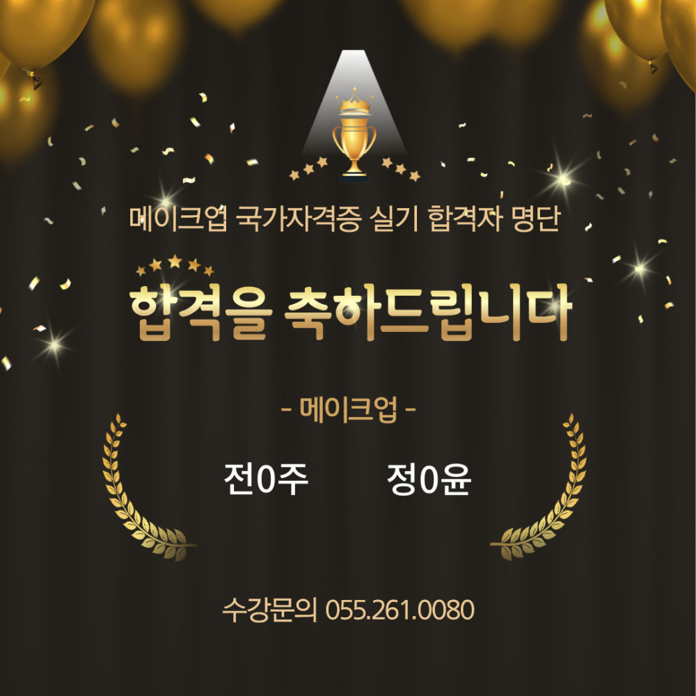 크리스챤쇼보창원캠퍼스 메이크업국가자격증 합격을 축하드립니다 페이지 정보 작성자 크리스챤쇼보 작성일25-03-18 15:19 조회7,679회 댓글0건 관련링크 이전글 다음글 목록 본문 25년 첫 실기시험 미용사(메이크업) 취득과정 실기합격자 명단입니다다시 한 번 실기최종합격을 축하드립니다 :-)수강문의 055.261.0080 댓글목록 등록된 댓글이 없습니다. 이전글 다음글 목록